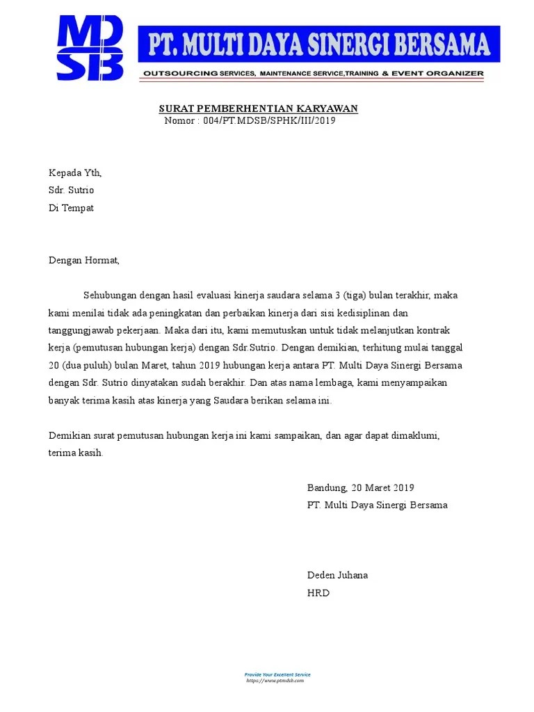 Contoh Surat Pemberhentian Pekerja Oleh Majikan : Faq Pdf